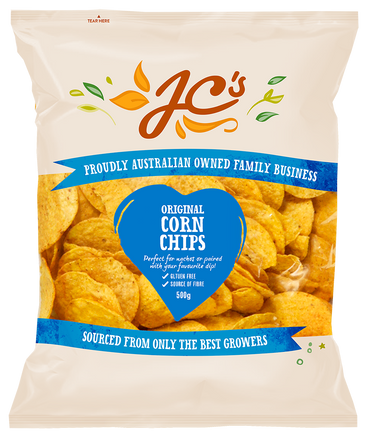 Pantry Corn Chips 'Jc'sSalted, golden and crunchy! Our Corn Chips are gluten free, non GMO and no artificial colours or flavours. Ideal for entertaining and sharing, these delicious chips... Regular price $8.49Sale price $8.49 Regular price/Each (500g)Unit price per
