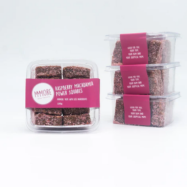 Raspberry Macadamia Power Squares - MMMoreGluten-free, dairy-free, refined sugar-free, vegan. Think nutty yet tangy sweetness to inspire spontaneous acts of romance. Ingredients: almonds, organic coconut, dates, macadamias, raspberries, organic maple syrup Regular price $10.25Sale price $10.25 Regular price/EachUnit price per