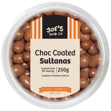 Pantry Choc Coated Sultanas 'Joe's Food Co'Chocolate Sultanas make a great snack to share as they come in a 500 g pack. They have a thick chocolate coating and a chewy fruit... Regular price $7.65Sale price $7.65 Regular price/Tub (250g)Unit price per